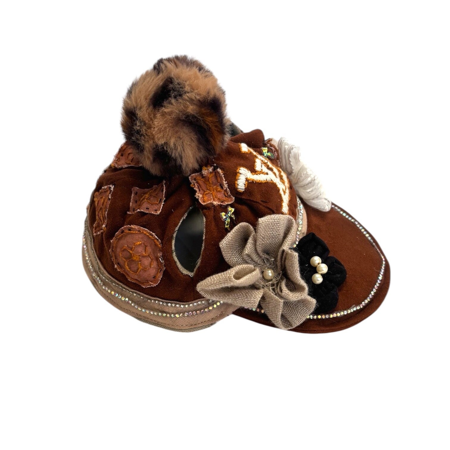 Madeleine on täysin hurahtanut hattuihin ja etenkin hän rakastaa lippalakkeja, jotka pitävät hänen hiuksensa mukavasti pois silmiltä kun vauhti kovenee. Hänellä onkin yllään mokkanahasta valmistettu, Louis Vuitton lippalakki, jossa on Louis Vuitton logomerkki lippalakin edessä ja Louis Vuitton Kuvioita ympäri lakkia. Varustetuin kuvioin Lippalakki on kierrätysmateriaaleista tehty ja siinä on pellavasta ja kierrätysmateriaaleista tehtyjä kukkasia. Lippalakki on myös koristeltu kimaltelevalla strassinauhalla.